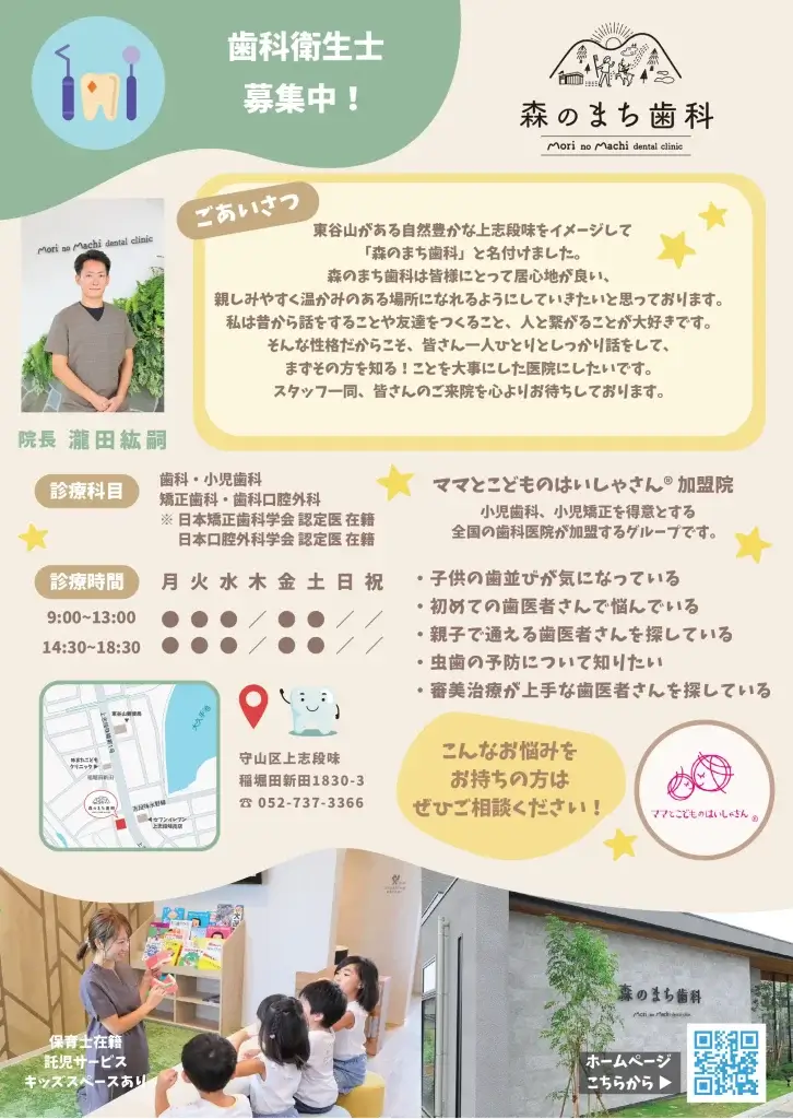 【森のまち歯科】ママとこどもの歯医者さん加盟院。託児サービス・キッズスペースありの歯医者さん