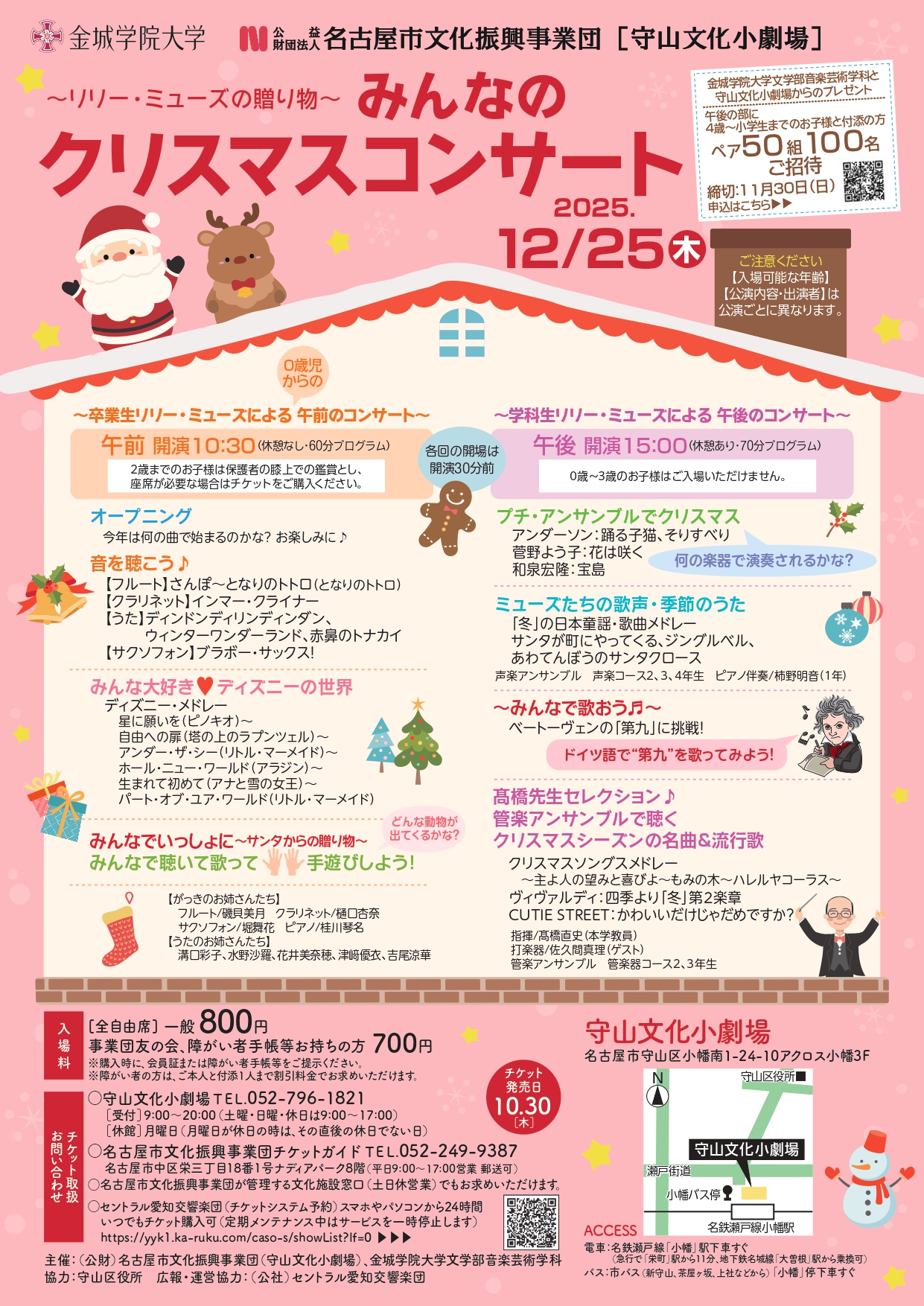 12/25(木) 金城学院大学&守山文化小劇場「みんなのクリスマスコンサート~リリー・ミューズの贈り物~」
