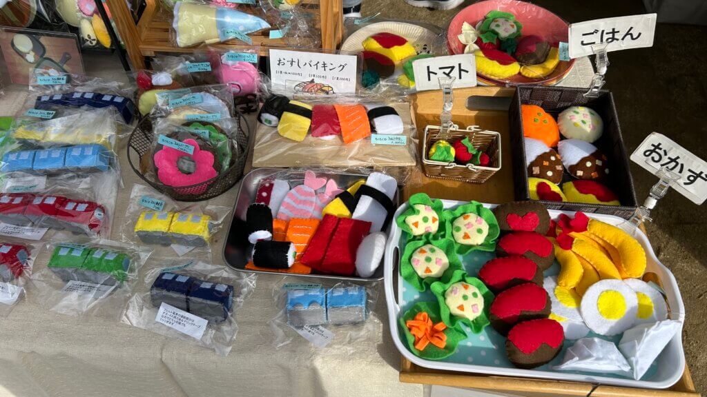 ▲贈り物にも喜ばれそうなカラフルなフェルトのおもちゃ