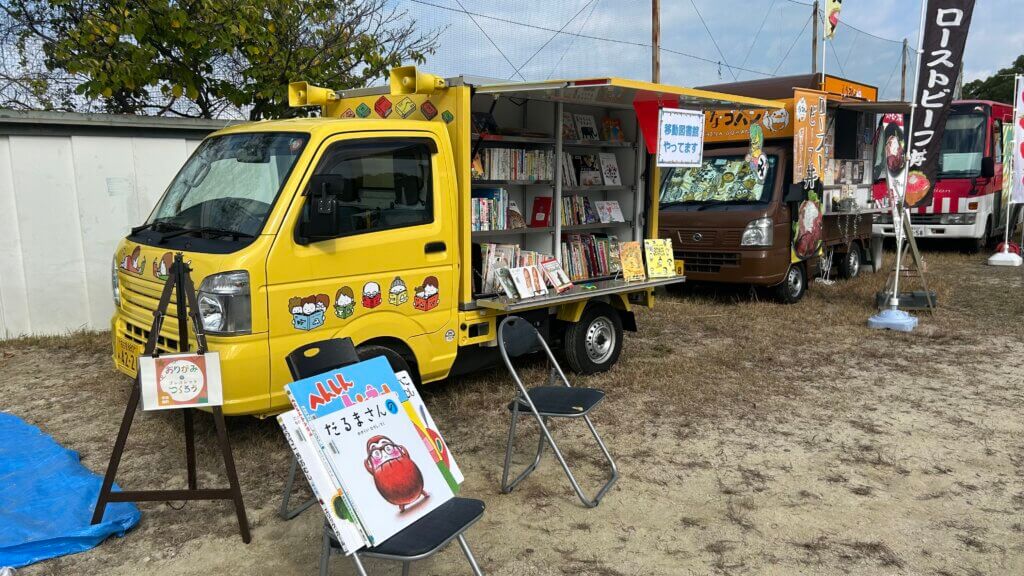 移動図書館トラックもきていました。色塗りや折り紙遊びも◎