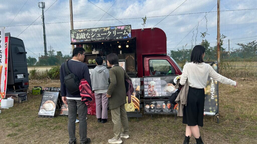 ローストビーフ丼やクロワッサン、いなり寿司や豚汁、シュークリームなどのスイーツまで、人気のキッチンカーも多数出店。