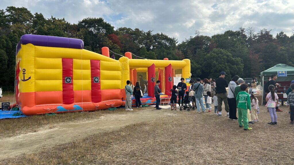 大きなエア遊具の ふわふわドーム は、常に行列ができる人気ぶり。